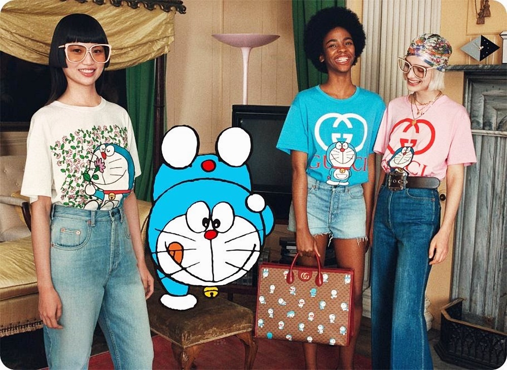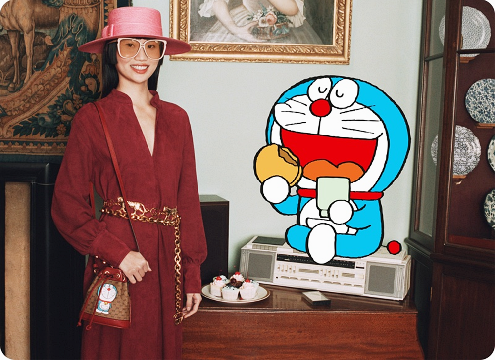 이런 멍문화에 주목하는 것은 바로 럭셔리 브랜드입니다. 럭셔리 브랜드에서는 1980~90년대를 지나온 세대들에게 익숙한 만화 캐릭터를 사용해 제품을 만들어내고 있죠. 가장 대표적인 브랜드는 이탈리아 럭셔리 브랜드 구찌입니다. 구찌에서는 일본의 인기 캐릭터인 '도라에몽'을 새긴 컬렉션을 발표했는데요. 구찌의 상징인 GG 모노그램 패턴에 도라에몽 캐릭터가 올라간 모습이었습니다. 도라에몽은 22세기에서 온 고양이 로봇인데요. 많은 마니아를 거느리고 있는 캐릭터입니다. 이뿐만이 아닙니다. 지난해 12월에는 디즈니 캐릭터인 도날드 덕과 협업을 하기도 했죠.