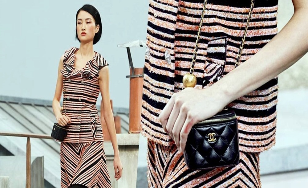 가방에는 긴 골드 체인이 부착되어 있는데요. 이에 크로스백처럼 몸에 걸칠 수도 있고 목걸이처럼 착용할 수 도 있습니다. 이 제품은 1,270달러, 우리 돈으로 약 142만 원 정도에 판매되었습니다.