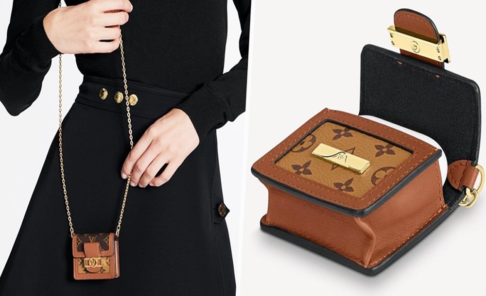 한편 루이비통에서도 에어팟 프로를 위한 케이스를 출시한 적이 있었습니다. 바로 '도핀 마이크로백 포 이어폰'입니다. 도핀백은 루이비통에서도 매우 유명한 시그니처 백 중의 하나인데요. 도핀백을 미니어처 버전으로 만든 것이었죠. 이 케이스는 도핀백처럼 모노그램과 모노그램 리버스가 사용되었으며 금색 버클로 이루어져 있습니다.