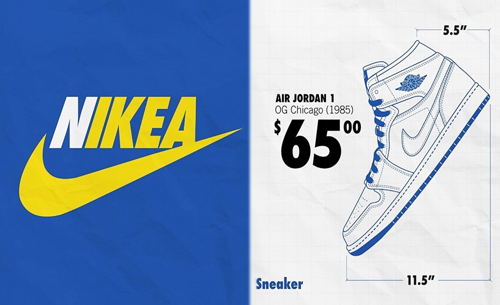 과연 나이키와 이케아의 만남은 어떤 모습일까요? 사실 이번 만남은 공식적인 것이 아닙니다. 스니커스 관련 인스타그램 계정인 슈박스(Shoobox)에서 진행한 것입니다. 슈박스에서는 두 개의 상징적인 로고를 합해 나이키도 이케아도 아닌, 혹은 나이키이기도 이케아이기도 한 로고를 만들었으며, 나이키의 유명한 운동화를 이케아 스타일의 카탈로그로 만들며 큰 화제가 되고 있습니다.