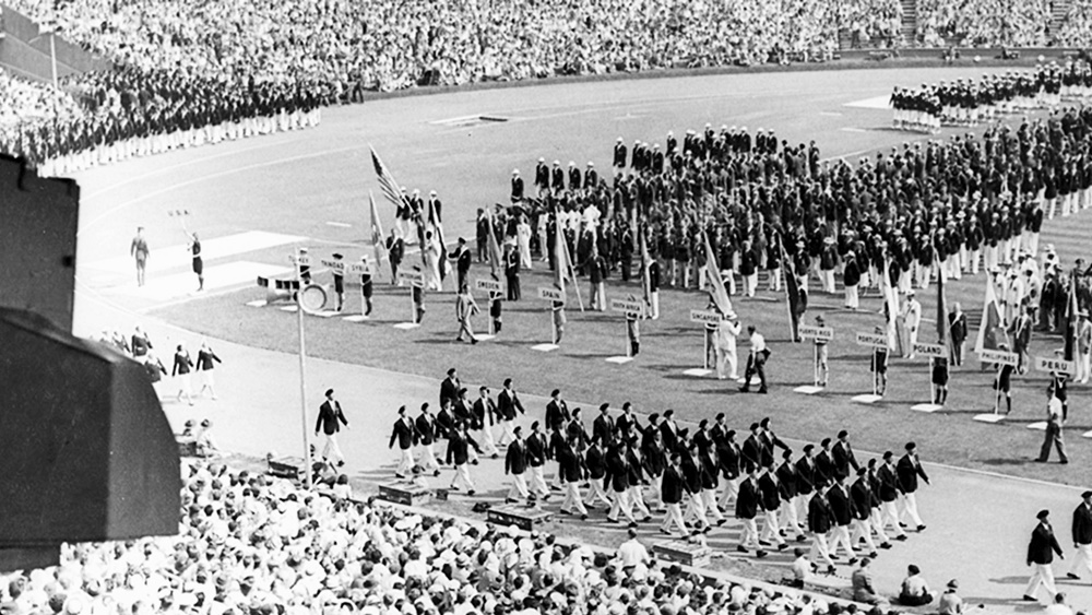 이는 제2차 세계대전 이후에 열린 올림픽이었기에 큰 의미가 있습니다. 그리고 로고에서도 그 점을 잘 볼 수 있죠. 먼저 로고에는 런던을 상징하는 '빅 벤'이 그려져 있습니다. 그리고 오륜기는 빅 벤의 뒤나, 빅 벤의 아래가 아니라 빅 벤의 위에 그려져 있죠. 올림픽을 주최하는 도시도 중요하지만 국제 사회가 더욱 중요하다는 것을 잘 보여준 디자인입니다.