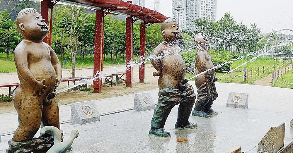 얼마 전 국민권익위원회 국민신문고에는 인천 송도 국제신도시 센트럴파크에 있는 오줌싸개 동상을 철거해달라는 민원이 접수됐습니다. 이 조형물은 지난 2011년 설치된 <갯벌 오줌싸개> 동상으로 김영걸 작가의 작품입니다. 작가는 갯벌에서 오줌싸개 시합을 하며 놀던 어린아이들의 모습을 표현하며 세계 5대 갯벌이었던 송도의 옛 모습을 재현하고자 했습니다.