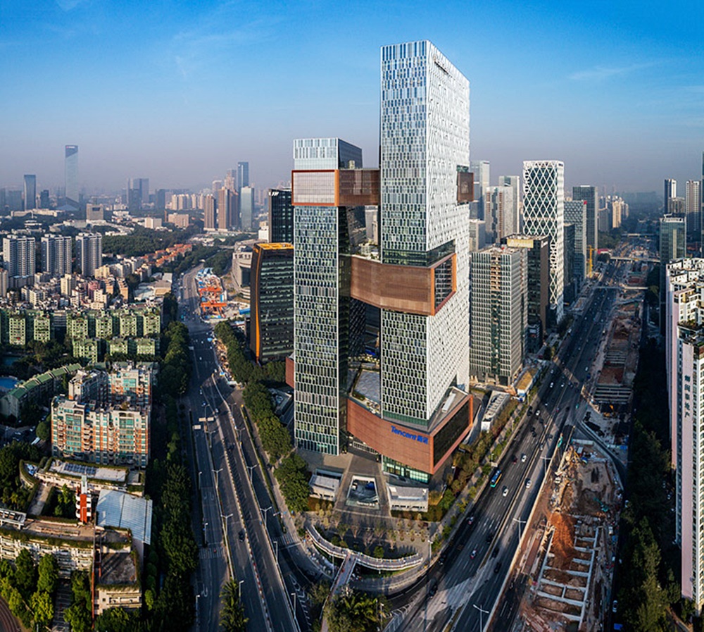텐센트는 3년 전인 2018년 4월 신사옥을 설립하며 중국 최대 기업으로서의 위상을 드러냈습니다. 신사옥은 50층, 39층짜리 빌딩 두 개가 다리로 연결되어 있는 모습인데요. 마화텅 텐센트 회장이 강조하는 '연결성을 잘 보여주는 건축물로 화제가 되었습니다. 이 건축물은 아마존과 구글 신사옥을 설계한 세계적인 건축가 로며트 맨킨의 NBBJ 건축회사가 설계를 맡기도 했는데요. 이 신사옥을 짓기 위해 5억 9,900만 달러, 우리 돈으로 약 6,700억 원을 투자하며 통 큰 면모를 보이기도 했습니다. 이렇게나 많은 돈을 쓴 텐센트가 또 하나의 사옥 짓는다고 밝히며 큰 화제가 되고 있습니다.