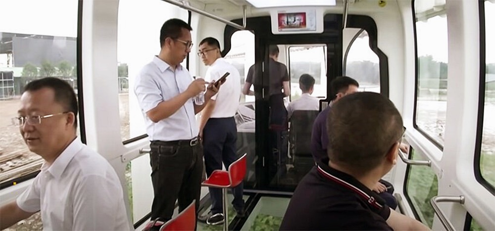 먼저 스카이 트레인의 외관입니다. 청두는 '판다의 도시'라고 불릴 만큼 판다가 매우 유명한데요. 이에 열차를 판다 모양으로 도색해두어 귀여움을 더했습니다. 또 하나 눈에 띄는 것은 선로의 궤도가 바로 열차의 위에 있다는 것입니다. 즉 열차가 위에 대롱대롱 달려서 가는 것이죠. 선로가 아래에 있는 것에 익숙한 많은 사람들은 이 자체만으로도 매우 스릴을 느낄 수 있습니다. 이것이 다가 아닙니다. 열차의 바닥은 투명한 재질로 만들었는데요. 이에 승객들은 발아래 경치를 보며 열차를 탈 수 있습니다. 이 열차는 바닥과 옆쪽의 창문을 통해 270도 뷰를 즐길 수 있습니다. 270도가 유리로 되어 있는 열차이기에 열을 반사할 수 있습니다. 이에 열차에서는 에어컨을 사용해 온도를 조절하고 있습니다.