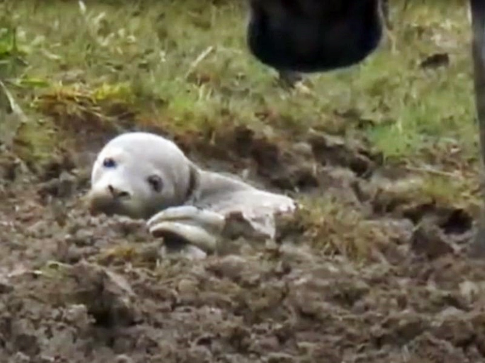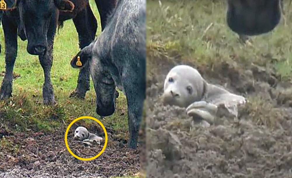 너무 놀란 이안 엘리스는 곧 강아지를 구조하러 해당 장소에 갔습니다. 소떼들은 얼굴만 내민 강아지를 에워싸고 있었고, 어찌 해야 할 바를 몰라 발만 동동 구르고 있었는데요. 이 강아지에게 가까이 다가가자 이안 엘리스는 더 놀라게 되었습니다. 얼굴만 내놓고 있던 이 강아지는 사실 강아지가 아니었기 때문입니다. 바로 바다표범이었습니다.