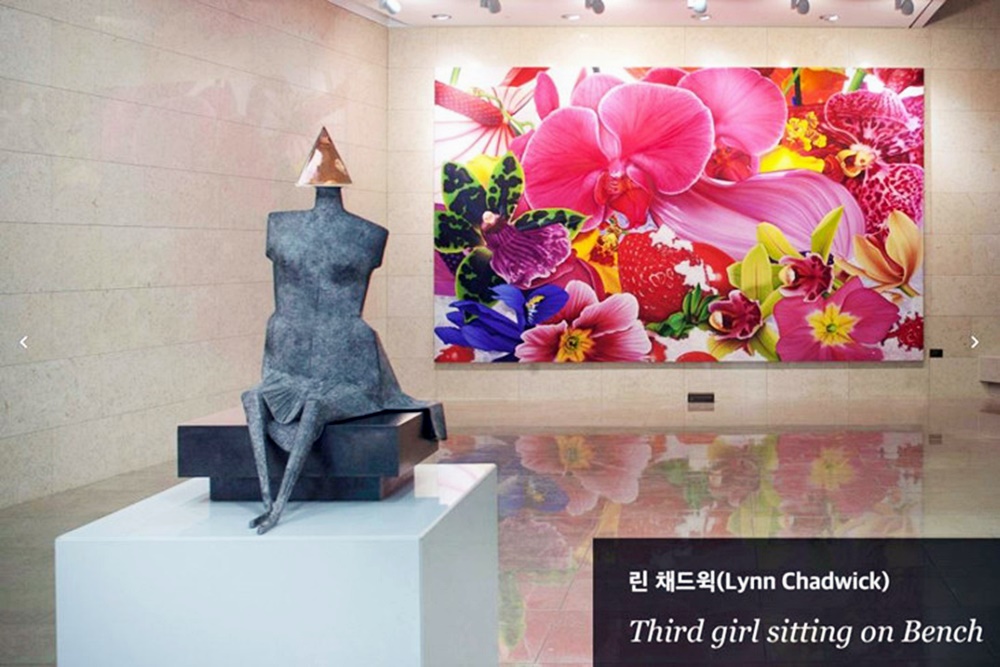 런던에서 출생한 영국의 조각가 린 채드윅의 작품 <벤치에 앉아있는 소녀>도 있습니다. 린 채드윅은 청동 및 강철로 추상적인 조형물을 만드는 작가인데요. 채드윅은 1956년 베니스 비엔날레에서 지아코메티를 제치고 국제 조각상을 수상하기도 했죠. 이는 매우 의례적인 일이었습니다. 그의 작품은 뉴욕의 모마, 런던의 테이트, 파리의 퐁피두에 소장되어 있는데요. 한남 더힐에서도 린 채드윅의 작품을 전시해두며 큰 화제가 되고 있습니다.