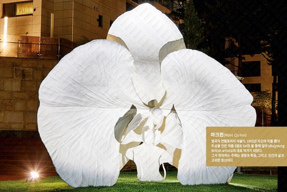 이 작품은 호접란을 모티프로 만든 것이었는데요. 물의 광장 가운데 위치해 마치 물에서 피어난 꽃을 연상시키고 있습니다.