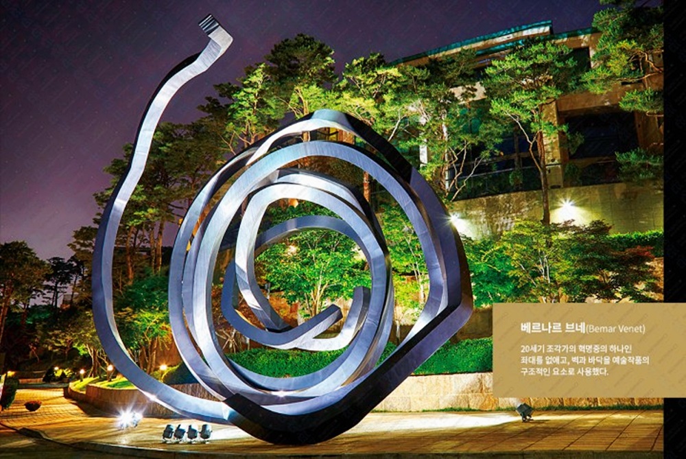 프랑스 출신의 개념주의 미술가 베르나르 브내의 작품 <두 개의 비결정적인 선>도 있습니다. 이 작품은 철 조각의 전통적 규범에 도전하였으며 현대 조각에 새로운 지평을 열어주었다는 평을 받고 있는데요. 철이 가지는 무게감을 이용해 강하면서도 유연하고 역동적이면서도 침묵하는 조형세계를 보여주고 있습니다.