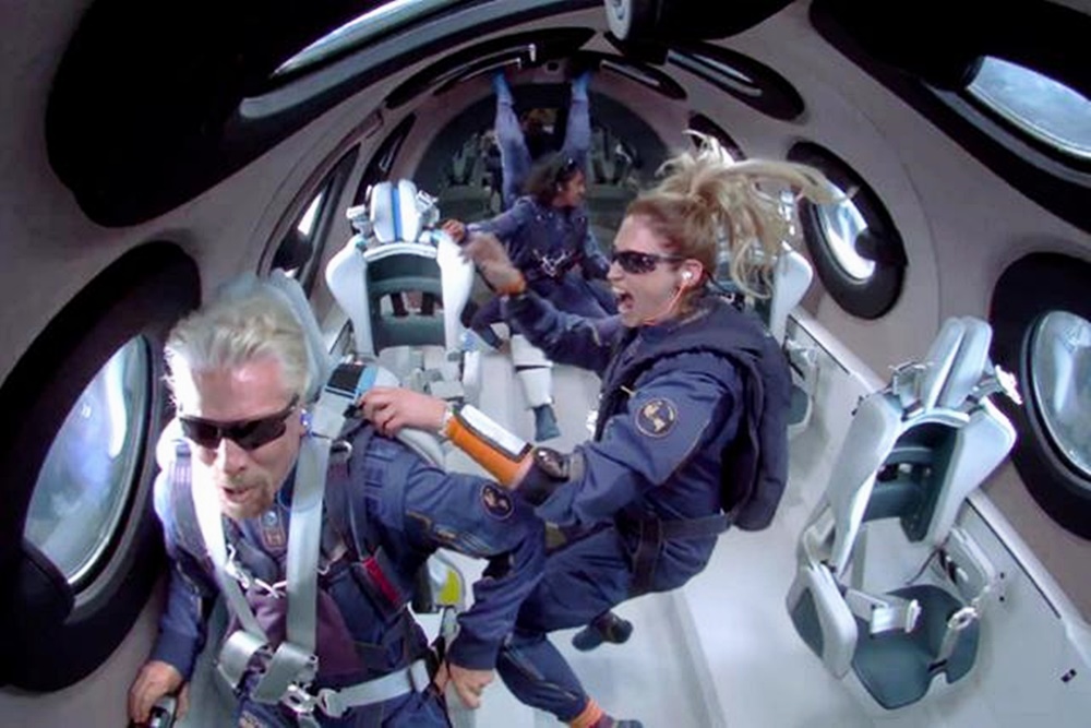 브랜슨은 우주 여행사 '버진 갤럭틱'을 세운 사람입니다. 그리고 11일 직접 시범 비행을 했죠. 그는 약 한 시간의 짧은 우주여행을 성공적으로 마치고 돌아왔습니다. 리처드 브랜슨과 함께 우주비행선을 탄 사람은 버진 갤럭틱의 직원 세 명, 전문 조종사 두 명이었는데요. 이들은 지구 상공 86km까지 도달했으며, 약 4분간 미세 중력을 체험했습니다. 이 장면은 영상으로 촬영되었는데요. 사람들이 기내에서 공중 부양하는 장면이 공개되며 큰 화제가 되기도 했습니다.