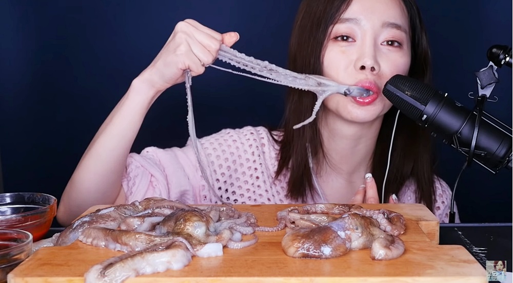 쏘영은 살아있는 오징어를 물에서 꺼내 칼로 몸통과 다리를 분리한 후 위에 간장을 붓는가 하면, 거대한 대왕 문어를 커다란 도마에 놓고 해감을 하기 위해 소금과 밀가루를 묻혀 벅벅 문지른 것이죠. 그리고 많은 네티즌들은 이를 동물 학대로 규정지으며 비판했죠.