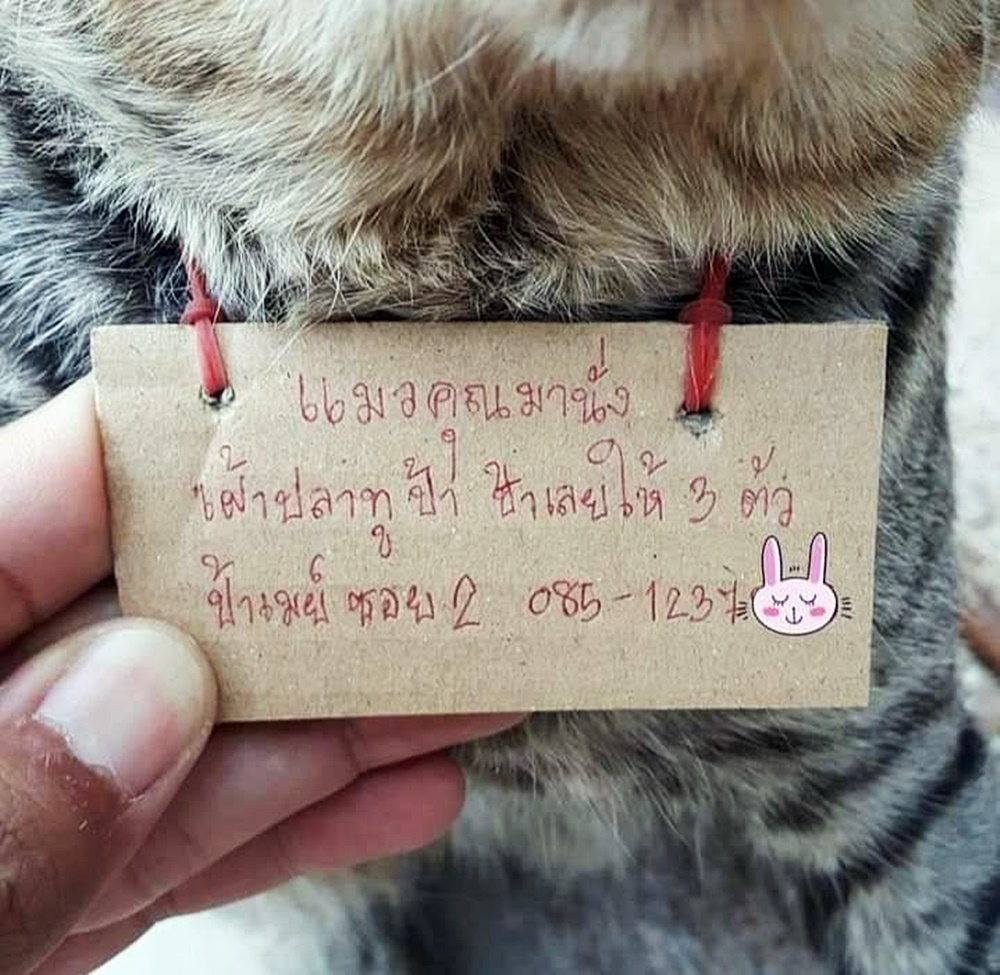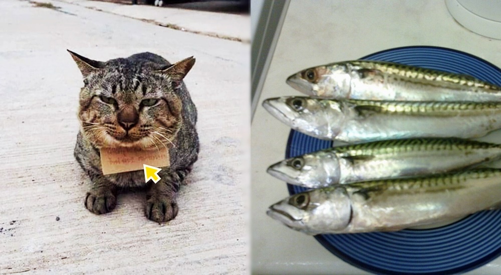 이 고양이는 맛있는 생선을 얻어먹기 위해 근처 생선 가게로 갔습니다. 이 생선가게는 '메이 이모'라는 여성이 운영하고 있는 것 같은데요. 이 메이 이모는 고양이를 꽤 좋아했던 것 같습니다. 고양이의 목에는 메모가 하나 달려있었는데요. '당신 고양이가 내 노점에서 고등어를 계속 쳐다봐서 내가 세 마리를 줬어요'라는 내용이었습니다. 그리고 이 메모에는 고등어 세 마리의 가격표도 있었죠.
