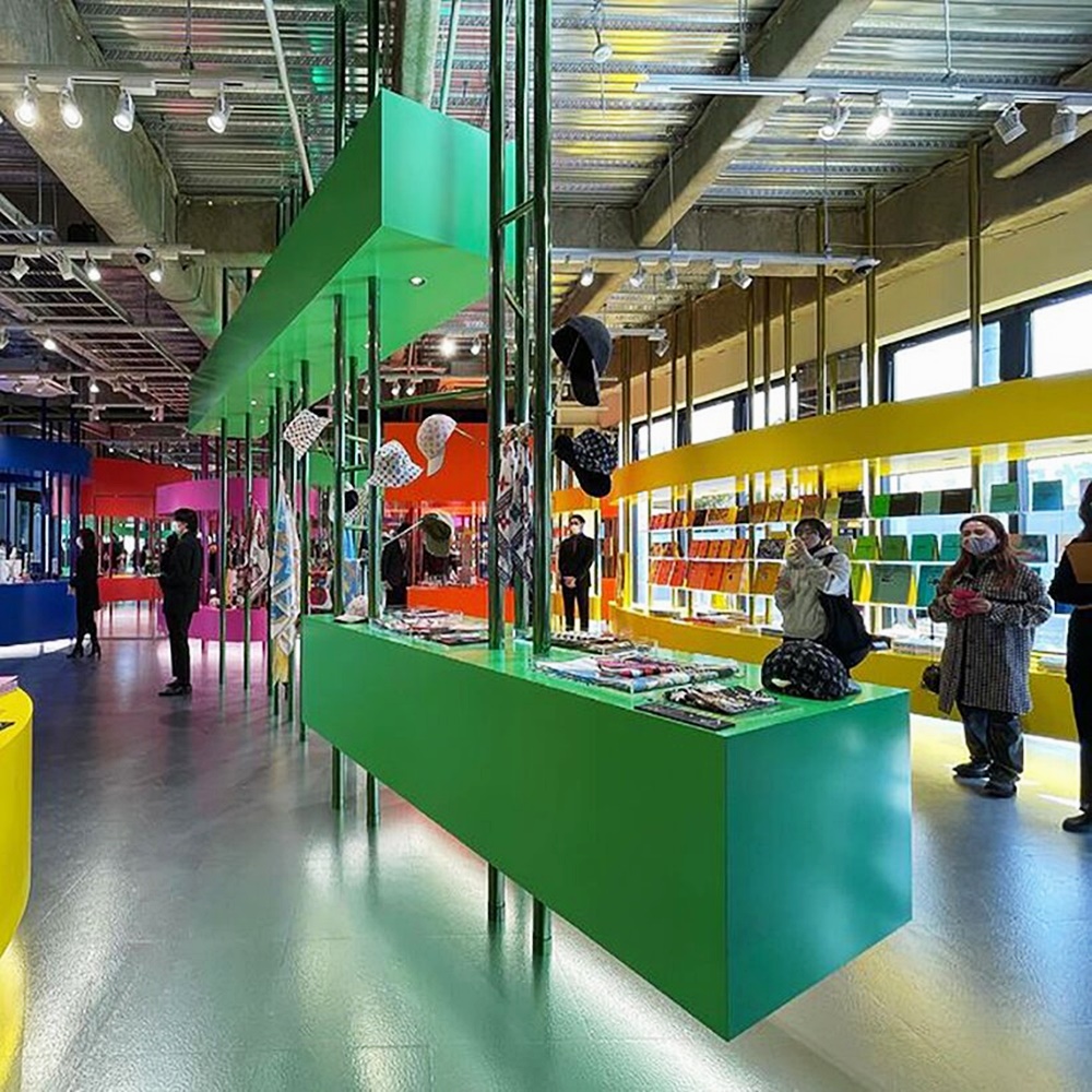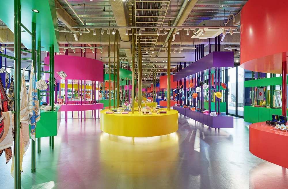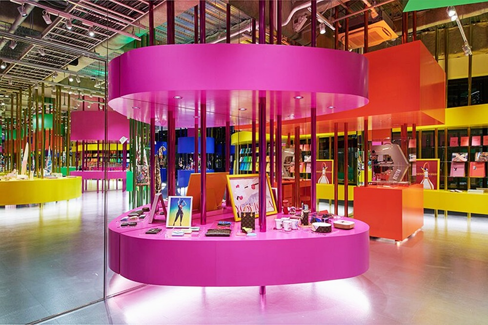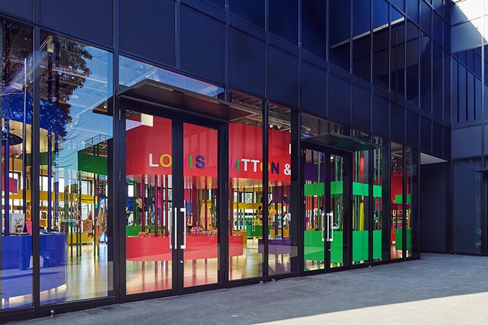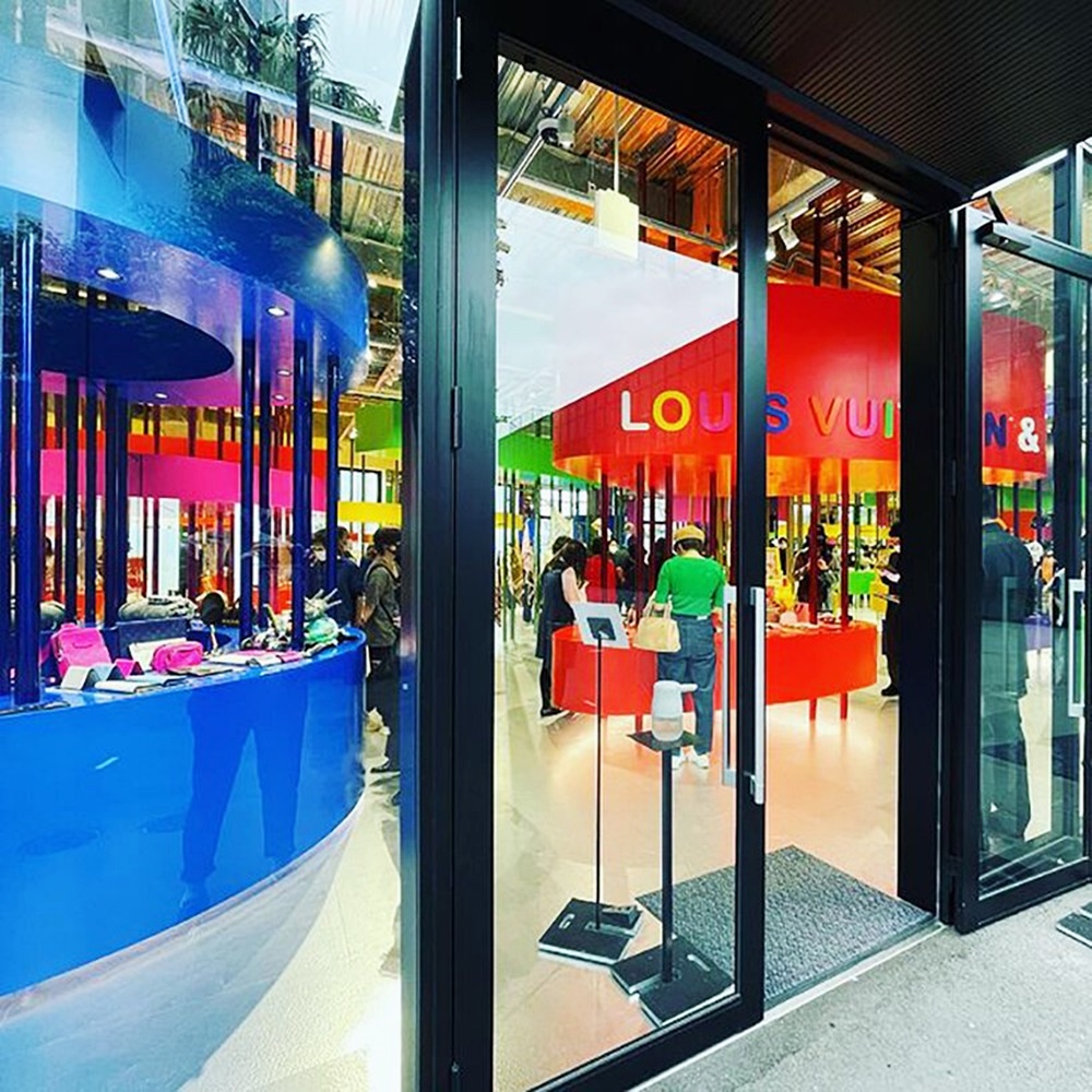 이 매장의 독특한 디자인은 일본의 건축 사무소인 스가와라 다이스케 건축에서 설계한 것입니다. 그리고 매장 자체가 '전시'의 일종이라고 하는데요. 160년의 역사를 지닌 루이비통의 역사와 아티스틱한 협업을 기리기 만들어진 것이라고 합니다. 그리고 과감한 색상 덕분에 매장 자체가 '설치 작품'이 되었네요.