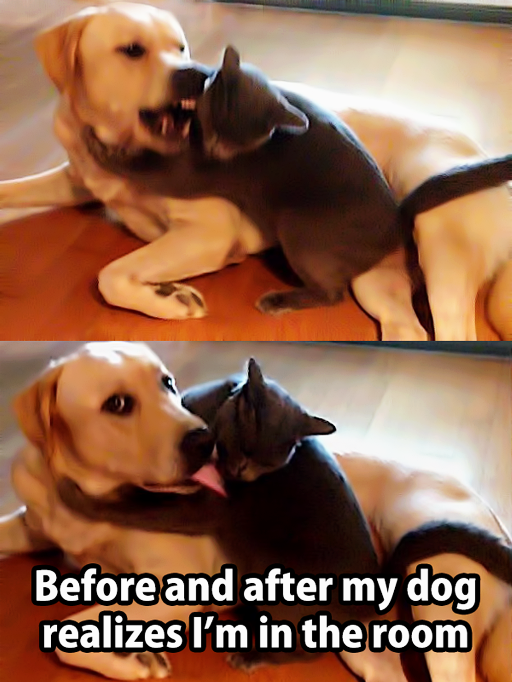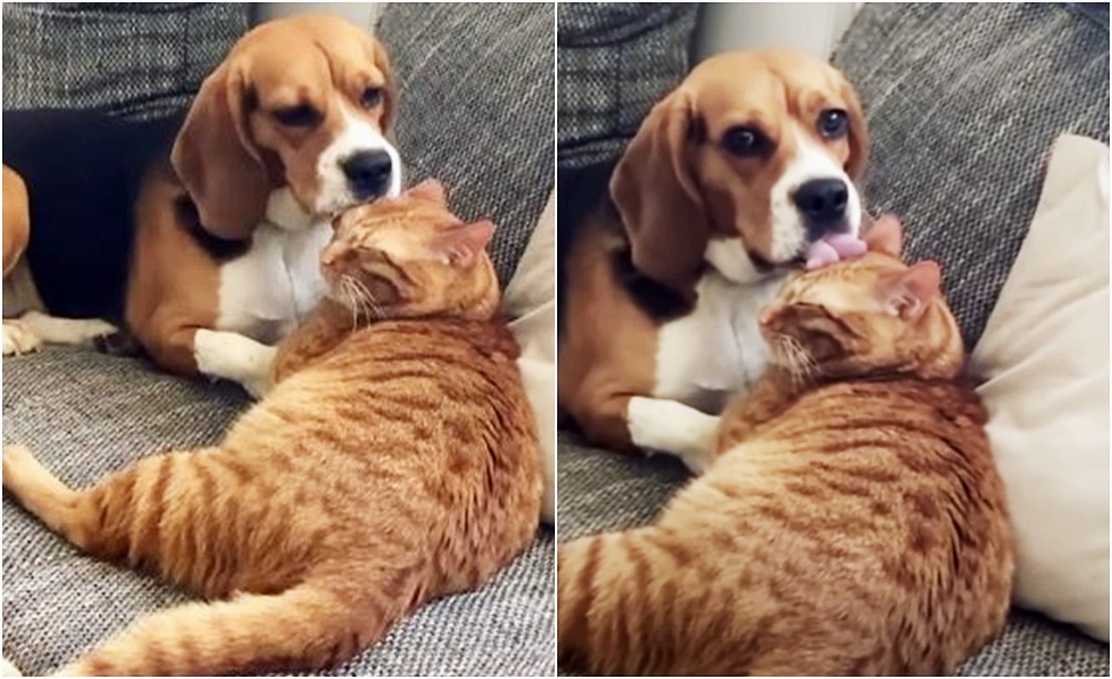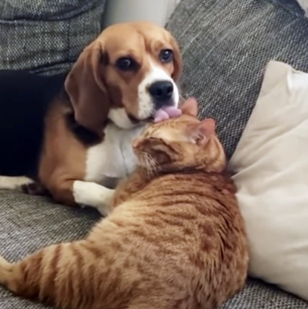 영상 속에서도 그런 모습이 잘 보이고 있습니다. 노바는 망고의 머리를 핥으며 그루밍을 해주고 있습니다. 너무나 열심히 머리를 핥아주는 모습을 본 주인이 노바를 불러도 노바는 주인의 목소리를 못들었는지 망고와의 시간에 열중하고 있네요. 얼마 후 주인은 노바의 앞에 나타 노바를 불렀는데요. 열심히 망고의 머리를 핥다가 주인이 등장하자 그대로 얼어버렸네요. 망고에 대한 자신의 사랑을 들킨 것이 민망하다는 표정입니다.
