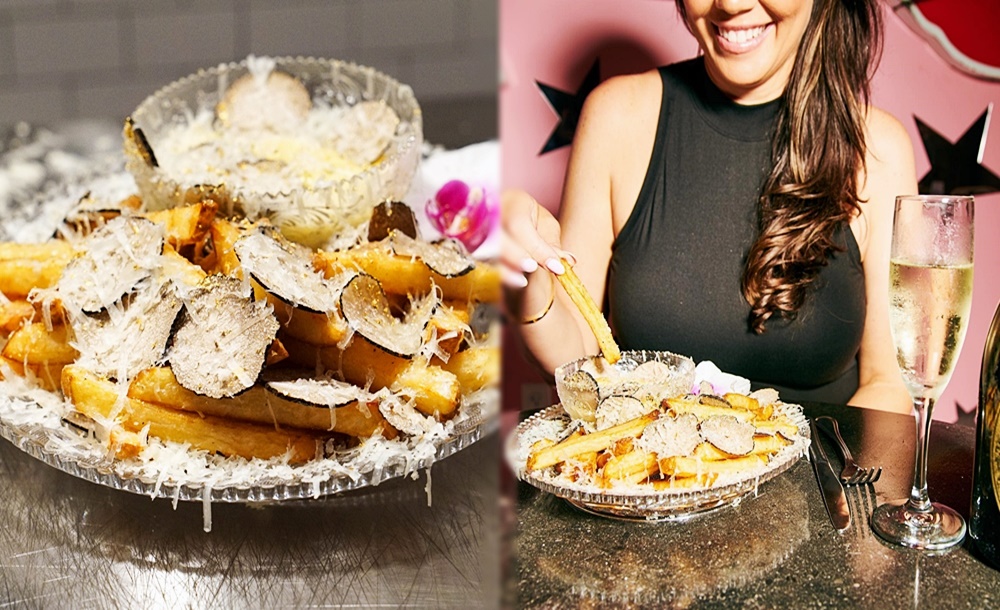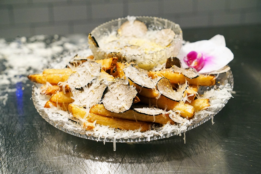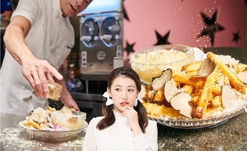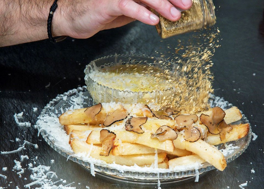 이것이 끝이 아닙니다. 감자튀김의 위에는 양의 젖으로 만든 치즈인 크레타 세네시 페코리노 치즈를 얇게 저며 올리고, 이탈리아산 블랙 트러플을 올리게 됩니다. 이후 이탈리아의 블랙 서머 트러플을 한번 더 올리고 23캐럿의 금가루를 뿌리게 됩니다. 감자튀김은 하인츠 케첩이 아닌 모르네이 디핑 소스와 함께 서빙되는데요. 이 소스는 블랙트러플 버터 등을 이용해 만들어집니다.