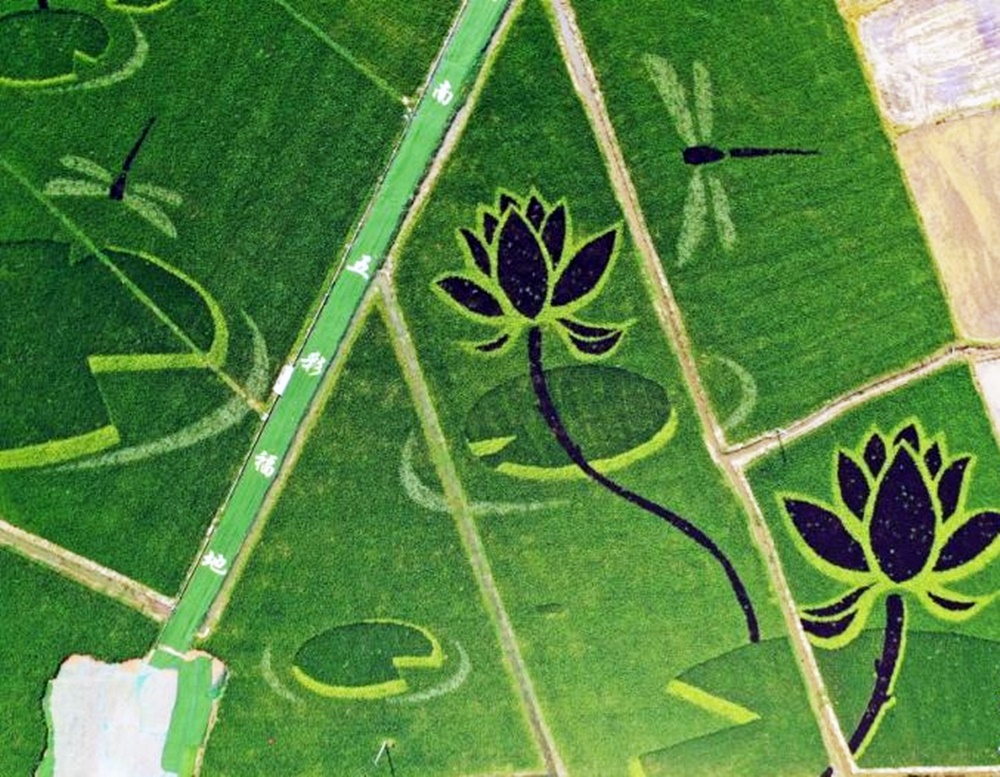 이뿐만이 아닙니다. 중국 산둥성의 둥잉시에 위치한 컨리현, 광시좡족자치구 친저우시와 충줘시 닝민현, 안후이성 화이난시 쇼우현, 랴오닝성 선양시 북쪽에 있는 선베이신구 등에서 매년 논 아트를 선보이며 관광객들을 유치하고 있습니다.