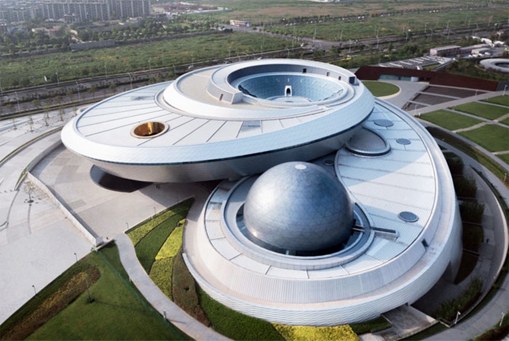 올해 문을 연 따끈따끈한 신상 박물관인 상하이 천문학 박물관은 건축가인 토마스 J. 웡이 설계한 것입니다. 이 건물은 궤도 모양과 우주의 기하학적 형상을 반영하기 위해 직선과 직각이 없는 것이 특징이죠. 마치 UFO 두 대가 겹쳐 있는 것 같은 이 박물관은 개장 이후 많은 사람들의 관심을 받았습니다.