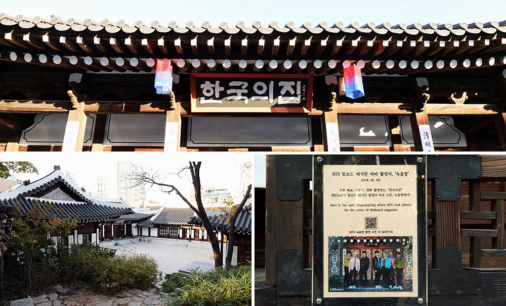 '한국의집' 또한 BTS 성지 중의 하나입니다. 바로 빌보드 매거진의 커버를 이곳에서 찍었기 때문입니다. 더 정확히는 '녹음정'이라는 장소에서 촬영을 했는데요. 이곳은 '우거진 나무 그늘과 싱그러운 여름을 시로 읊는 정자'라는 뜻을 지니고 있습니다. 한국의 집은 MBC 예능 프로그램 <놀면 뭐하니?>에 등장하기도 했는데요.