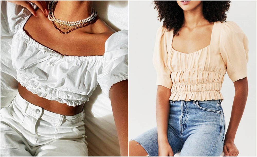 크롭탑 디자인의 셔링 패션도 눈에 띕니다. 셔링의 특성상 노출이 있어도 그리 부담스러워 보이지 않기에 더욱 트렌디한 크롭탑 디자인이 더욱 사랑받고 있는 것 같네요.