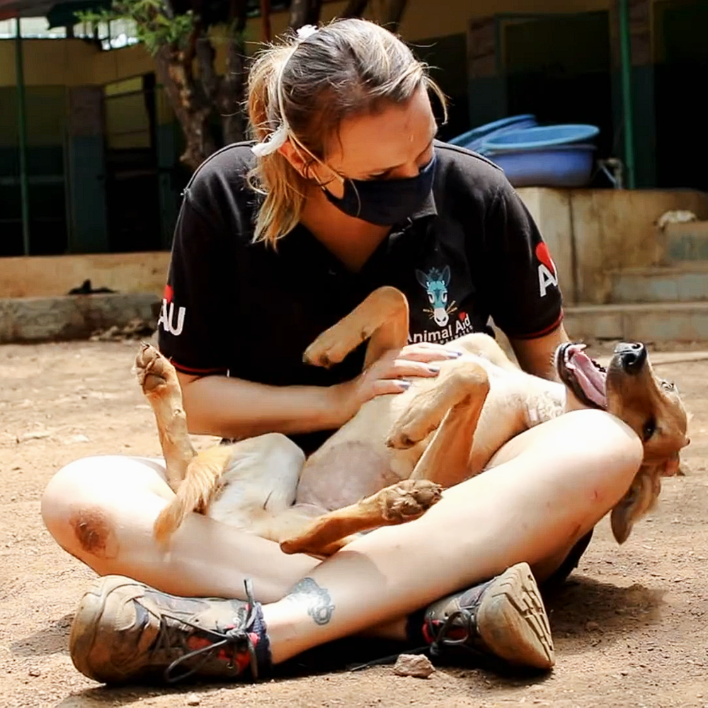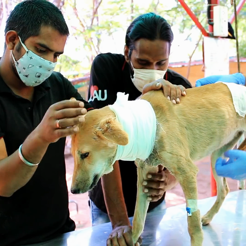 자원봉사자 중 한 명이 겁에 질린 칙피를 달래기 위해 털을 쓰다듬었습니다. 칙피의 자세와 표정만으로도 칙피가 현재 스트레스를 많이 받고 있다는 것을 알았죠. 이들은 천천히 칙피를 들어올렸습니다. 한눈에 봐도 칙피의 몸에는 찔린 자국이 있었고, 칙피는 제대로 서 있지도 못할 정도의 상태였습니다. 다리는 절뚝거렸는데요. 칙피가 조금만 더 늦게 발견되었다면 죽을 수도 있었습니다.