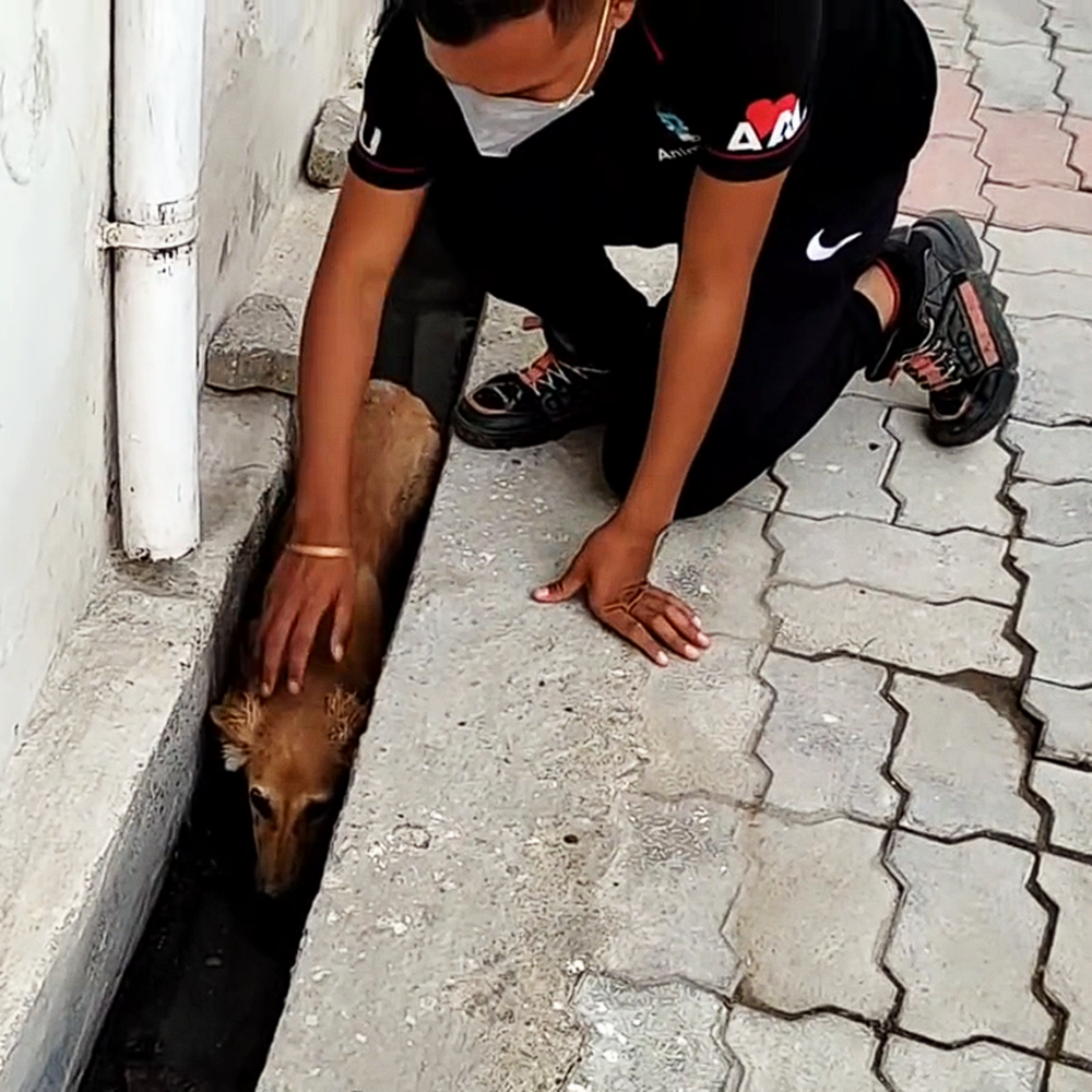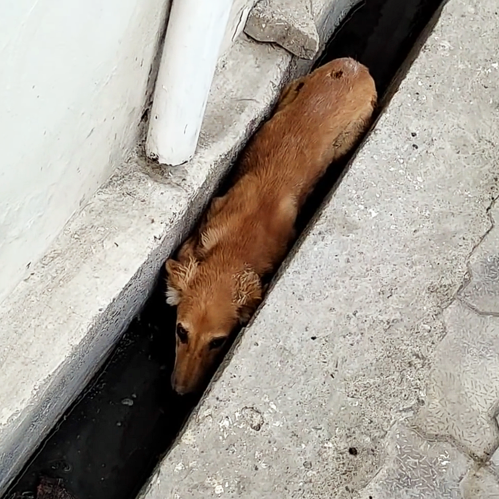 온갖 오수와 쓰레기가 흘러 들어가고 악취가 진동하는 하수구. 이런 하수구에서 발견된 한 강아지가 있었습니다. 바로 칙피(Chickpea)입니다. 칙피는 인도의 한 하수구에 갇혀 오도 가도 못하는 상황이었는데요. 하수구는 칙피의 몸에 꽉 끼었고, 움직일 틈도 거의 없었습니다. 게다가 이 하수구는 악취가 진동했고, 너무 더러운 검은색 물이 흐르고 있었습니다. 그럼에도 불구하고 칙피는 두려운 눈빛으로 하수구에서 얼음처럼 서 있었습니다.