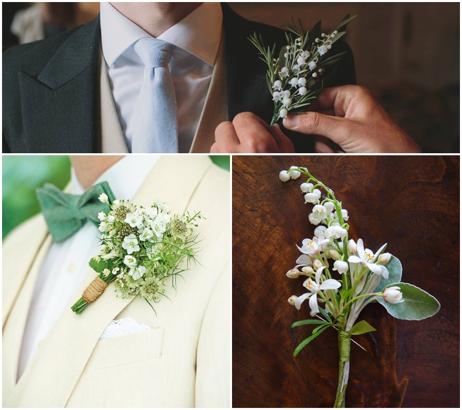 이나영과 결혼한 원빈, 송혜교와 결혼한 송중기 둘 다 이런 스타일의 부토니아로 옷깃을 장식했습니다. 송중기는 은방울꽃을 사용했으며 원빈은 들꽃으로 부토니아를 만들었다고 하네요. 이 두 신랑들은 신부의 부케에 사용된 꽃과 같은 꽃을 사용해 통일감을 줬다고 합니다.
