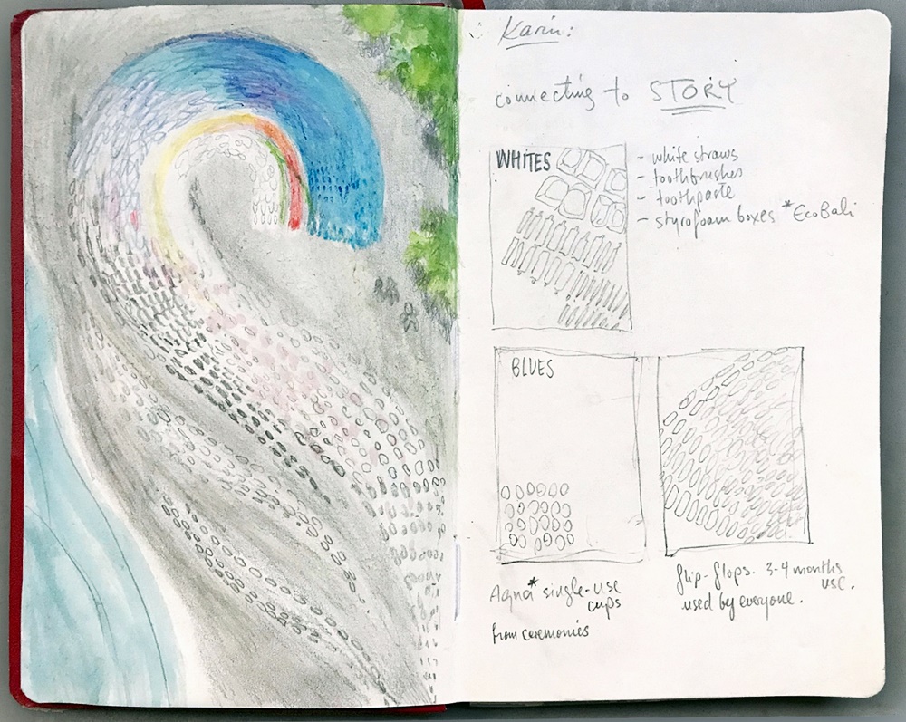 이 작품을 만드는데만드는 데 사용된 플라스틱 쓰레기는 다양한데요. 의료폐기물부터 냉장고, 틀니, 불상조각, 슬리퍼 등이 있습니다. 이 쓰레기는 발리의 해변에서 주운 것인데요. 50명의 자원봉사자들이 이를 했다고 합니다. 작품을 만드는 데는 12시간이 걸렸지만 현장에 있었던 시간은 36시간, 해체 시간은 6시간 정도였습니다.