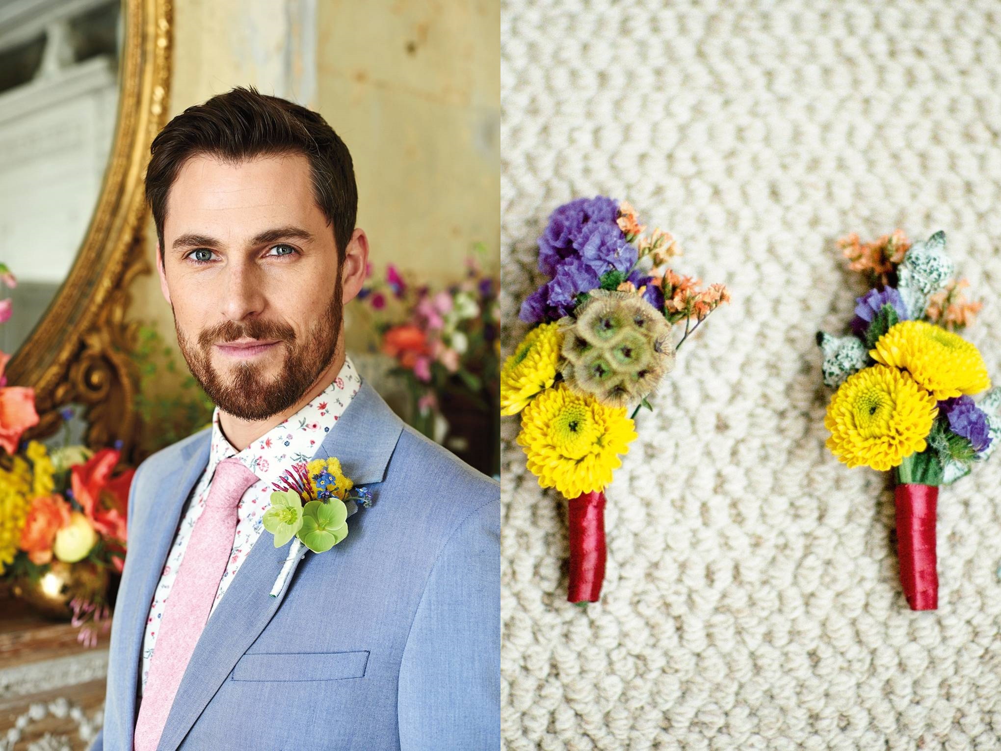 부토니아에 원색계열의 꽃을 써보는 것은 어떨까요? 소화하기 어려울 것 같지만 오히려 밝은 슈트, 어두운 슈트 등 모든 슈트에 잘 어울리며 특히 야외 웨딩 시 더욱 생기 넘치게 소화할 수 있습니다.