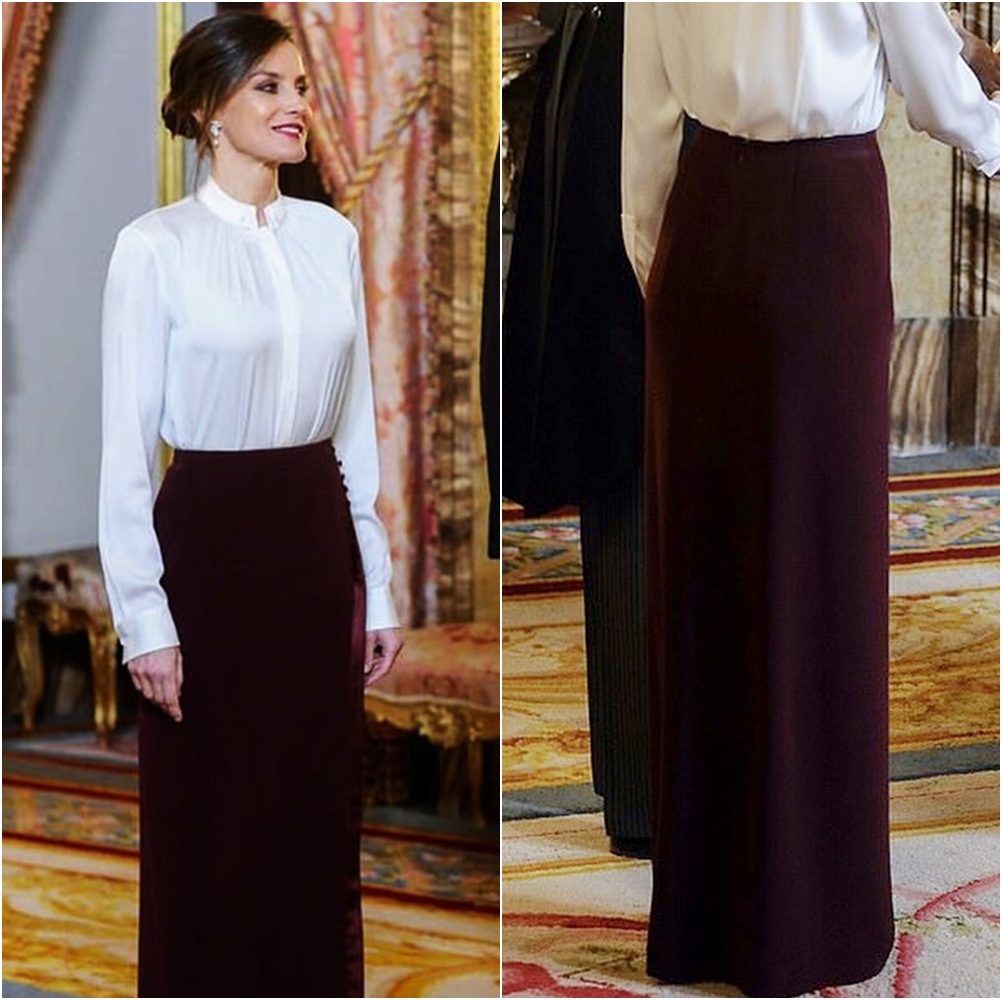 스페인의 왕비이자 소문난 왕족 패셔니스타인 레티시아 스페인 왕비 또한 맥시스커트를 즐겨 입곤 합니다. 이날 선보인 패션은 깔끔한 흰색 블라우스에 일자 디자인의 맥시 스커트였는데요. 여기에 자연스러운 로우번 헤어스타일을 하고 우아한 액세서리를 걸쳐 스타일링을 완성했습니다.