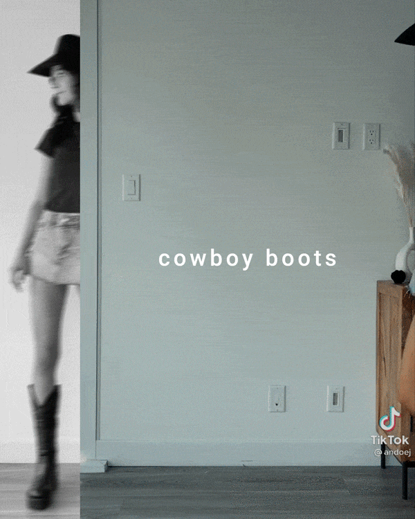 웨스턴 스타일의 카우보이 부츠 또한 자주 보이는 아이템입니다. 카우보이 부츠는 날렵한 코와 사선으로 뭉툭하게 떨어지는 뒷굽이 매력적인 아이템인데요. 빈티지 스타일링에 잘 어울린다는 특징이 있습니다.