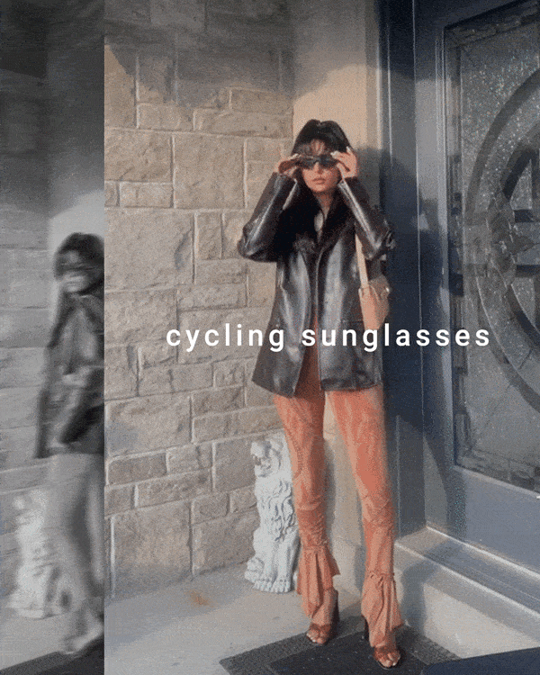마치 사이클링을 할 때 착용하는 선글라스 같은 '스포츠 선글라스' 스타일이 유행하고 있습니다. 이 스포츠 선글라스는 가죽 블레이저나 빈티지 봄버 재킷을 입은 스트리트웨어 스타일링에 잘 어울리는데요. 뉴트로 스타일링을 완성해주는 특급 아이템이 아닐까 싶네요.