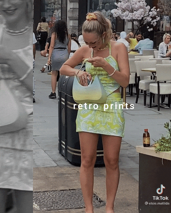 60년대 패션에서 영감을 얻은 레트로 프린트 또한 틱톡 인플루언서들이 사랑하는 패션 중 하나입니다. 이들은 레트로 프린트 의상을 상 하의 세트로 입어 효과를 극대화하고 있습니다.
