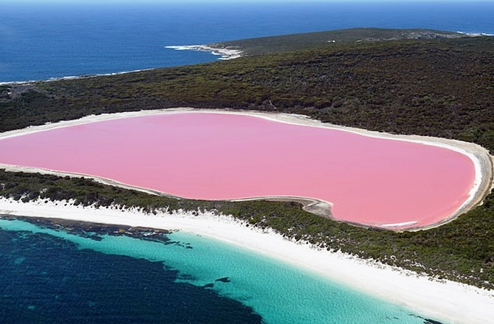 한편 독특한 물 색상으로 전 세계인들의 사랑을 받고 있는 호수는 아라라콰라 호수뿐만이 아닙니다. 호주의 웨스턴 오스트레일리아주 미들섬에는 '힐리어 호수'가 있는데요. 이곳은 마치 딸기우유를 가득 담아놓은 것 같은 선명한 핑크빛의 물 색상으로 유명한 곳입니다. 이 호수의 색상은 녹조류의 일종인 식물 플랑크톤이 자외선으로부터 몸을 보호하기 위해 베타카로틴이라는 붉은 색소를 활성화시켜 만들어졌습니다. 이에 더워질수록 색이 짙어지고 추워질수록 색이 옅어진다는 특징이 있습니다.