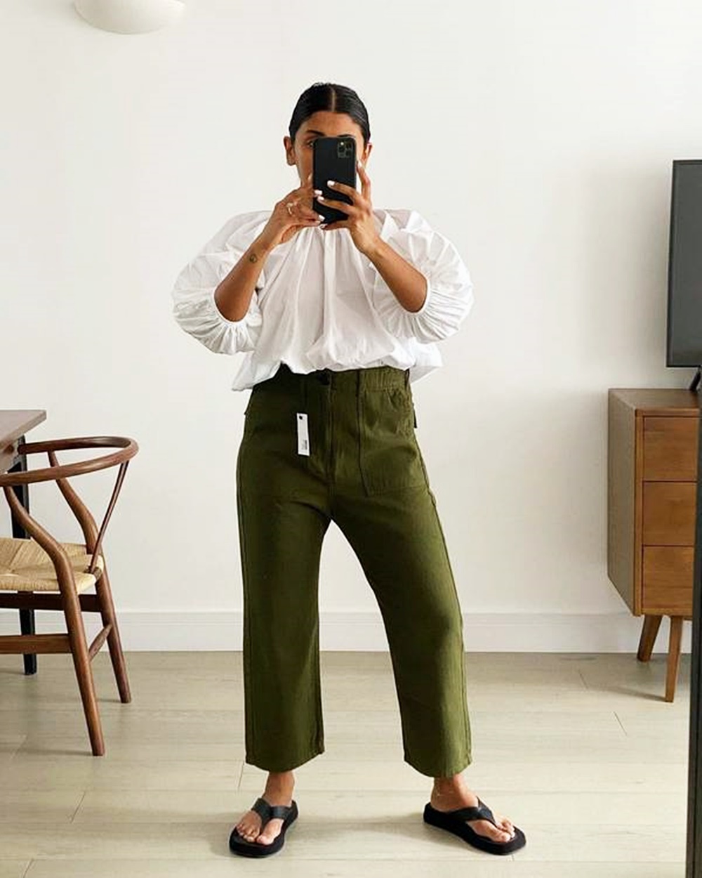1. 하이라이즈 카키 팬츠