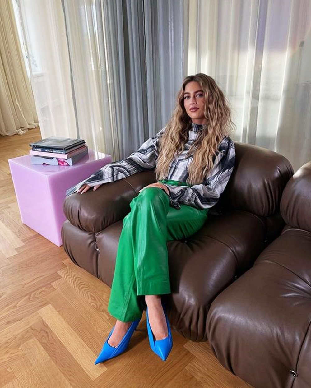 로라이즈 루즈 팬츠 또한 이미 많은 패션 피플들에게 사랑받고 있는 아이템입니다. 골반 위로 아슬아슬하게 걸쳐지는 밑위 길이에 크롭탑을 매치해 허리선을 살짝 드러내면 섹시한 이미지를 줄 수도 있죠. 로라이즈 루즈 팬츠에는 스니커즈를 신는 것이 제격입니다.