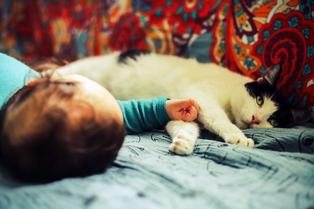 또한 아이가 자는 곳은 고양이가 출입할 수 없도록 해야 합니다. 아이들은 몸을 뒤집을 수 없고, 고양이는 아이의 얼굴에 너무 가까이 다가갈 수 있기에 아이가 질식할 수 있기 때문입니다. 고양이가 이곳을 출입할 수 없도록 해야 고양이가 소변으로 마킹하는 것을 방지할 수 있기도 합니다. 또한 고양이가 아이를 질투하지 않도록 고양이와 단둘이 시간을 보내는 것도 중요하다고 밝히고 있네요.