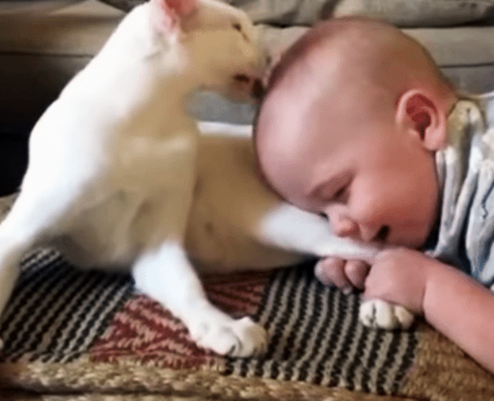서로를 너무나 좋아하는 것이 눈으로 보이는 고양이와 아기. 이들이 앞으로도 사랑스럽고 아름다운 우정을 길러나가길 바랍니다.