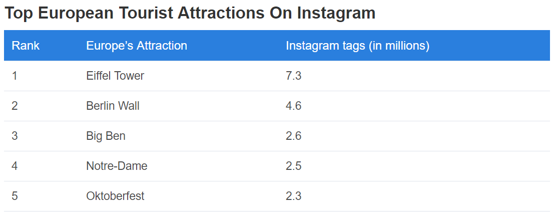 인스타그램은 가장 인기 있는 SNS 중의 하나입니다. 사람들은 인스타그램을 통해서 여행 정보를 검색하기도 하고, 인스타그램에 올리기 위해 여행 계획을 세우기도 할 정도로 여행과 인스타그램은 떼레야 뗄 수 없는 관계입니다. 그렇다면 인스타그램에 가장 많이 올라온 유럽 여행지는 어디일까요?