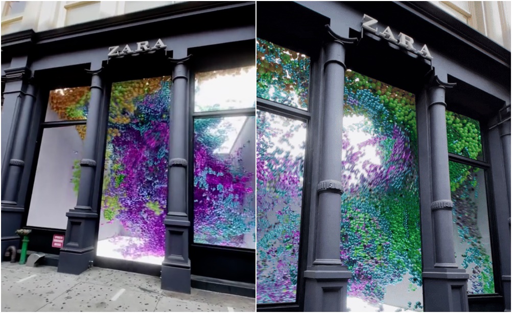 얼마 전 자라에서는 자사의 틱톡을 통해 뉴욕 매장의 전경을 소개했습니다. 길거리에서 본 매장 안에는 전혀 옷이라든지 마네킹은 없었고 몇 천 개의 공들이 마치 소용돌이에 휩쓸리듯 이리저리 격렬하게 움직이는 모습을 볼 수 있습니다. 이 영상을 접한 네티즌들은 '멋지다'는 반응이었는데요. 곧 이 영상의 진위 여부에 대해 의문을 제기했습니다. 과연 이 영상은 진짜인지, 아니면 합성된 것인지 궁금했던 것이죠. 결론부터 말하면 이 영상은 진짜였습니다. 그리고 영상 속 공은 '그래픽'인데요. 바로 3D 영상을 보여주는 LED 윈도우 디스플레이였습니다.