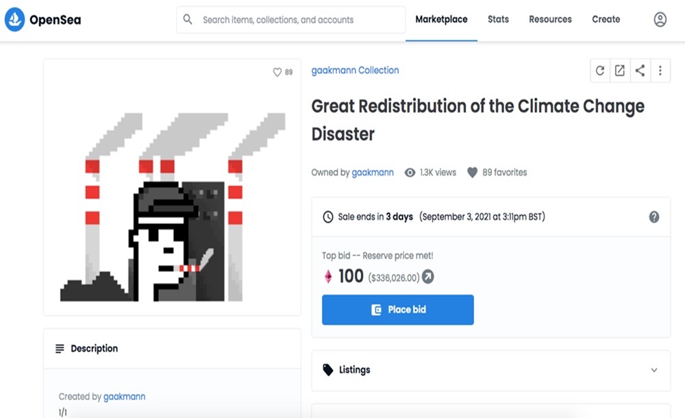 이런 뱅크시의 첫 NFT 작품을 살 수 있다는 기대감을 가진 프랭크시는 이를 꼭 구해야겠다고 마음먹었는데요. 프랭크시는 뱅크시의 공식 웹사이트에 올라온 광고를 클릭했고, 이 광고는 세계 최대 NFT 거래소인 오픈씨(OpenSea)로 연결되었습니다. 그리고 그는 다른 낙찰자들과는 비교도 안 될 정도의 금액을 제시했는데요. 바로 33만 6천 달러, 우리 돈으로 약 3억 8,800만 원 정도였습니다. 경매는 순식간에 종료되었고, 구매 대금은 가상화폐 이더리움으로 판매자에게 넘어가고야 말았죠.