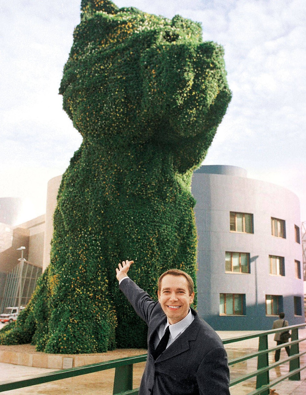 사실 이 작품은 제프 쿤스가 어려웠던 시절 재기에 성공할 수 있도록 해 준 작품인데요. 제프 쿤스가 포르노 스타이면서 전직 이탈리아 국회의원이었던 치치올리나와 결혼한 이후 1990년 자신들의 성행위를 묘사한 조각으로 예술계에서 왕따 신세를 면치 못했지만 이후 <PUPPY>를 제작하고, 빌바오 구겐하임에서 이 작품을 선정, 구입하면서 재기에 성공하게 해 준 것이죠. <PUPPY>는 1997년에 빌바오 구겐하임에 입성하게 되었습니다. 미술관장은 홍보 영상을 통해 '이 작품은 빌바오 시의 아이콘'이라고 밝히며 애정을 드러내기도 했죠.