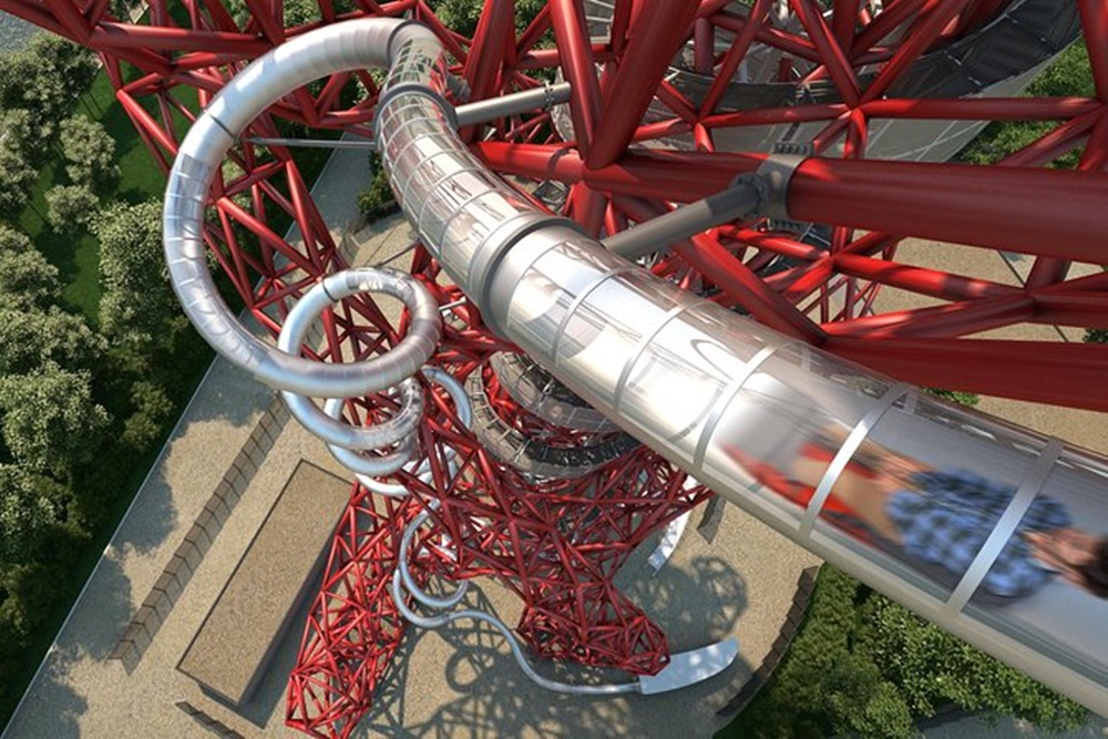 '런던 슬라이드'라고도 불리는 아르셀로미탈 궤도는 세계에서 가장 긴 미끄럼틀로도 유명합니다. 이 설치물은 2012 런던 올림픽을 기념해 만들어졌는데요. 이 탑이 공개되었을 때 평론가들과 대중들의 반응은 그리 좋지 않았습니다. 영국 신문들은 '공공미술의 고질라'라고 혹평했으며 대중들은 '물담배통' 같다며 비난했죠. 이 조형물의 가격도 논란이 되었는데요.