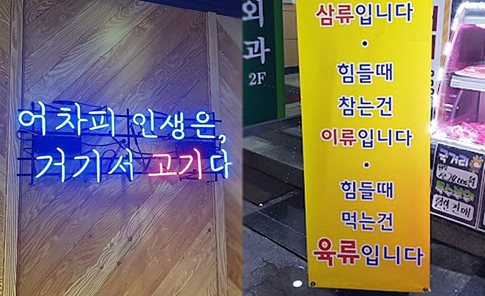 고깃집의 벽면에 적혀있는 재미난 문구들입니다. 그만큼 고기는 많은 사람들에게 사랑받고 있는 음식이죠. 그러나 고기를 먹는 것으로 인해 엄청난 환경오염이 발생한다는 사실을 알고 계셨나요? 소고기 1kg을 생산하기 위해 27kg의 이산화탄소를 배출하고, 가축의 배설물은 물과 공기를 오염시키고 먼지, 스모그, 악취 등의 유독 가스를 방출합니다. 또한 소는 자신이 섭취한 단백질의 3%, 칼로리의 4%만을 최종 소비자인 인간에게 제공하는데요. 즉, 97% 정도의 칼로리와 단백질은 낭비하는 셈이 됩니다.