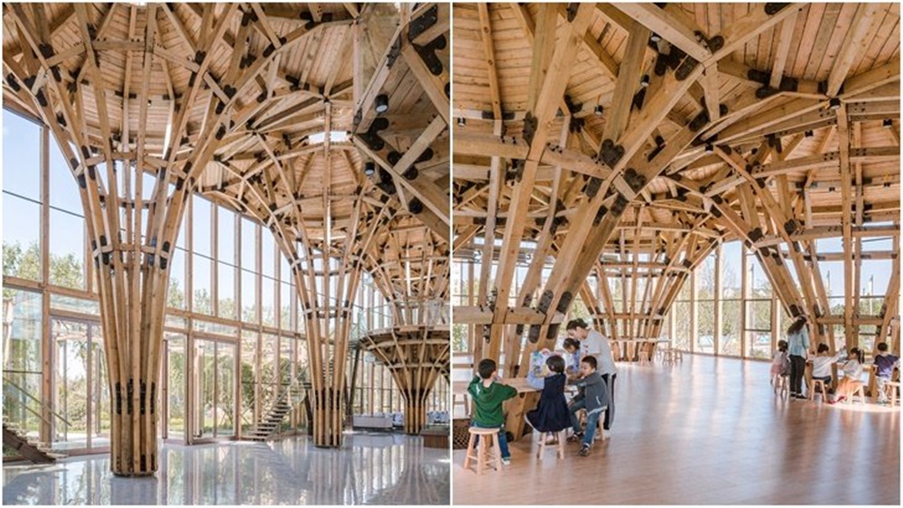 이 건축물은 건축회사 LUO 스튜디오에 의해 설계되었는데요. 육면체의 깔끔한 외관과 나무를 닮은 내부 구조물이 묘한 조화를 이루고 있습니다.