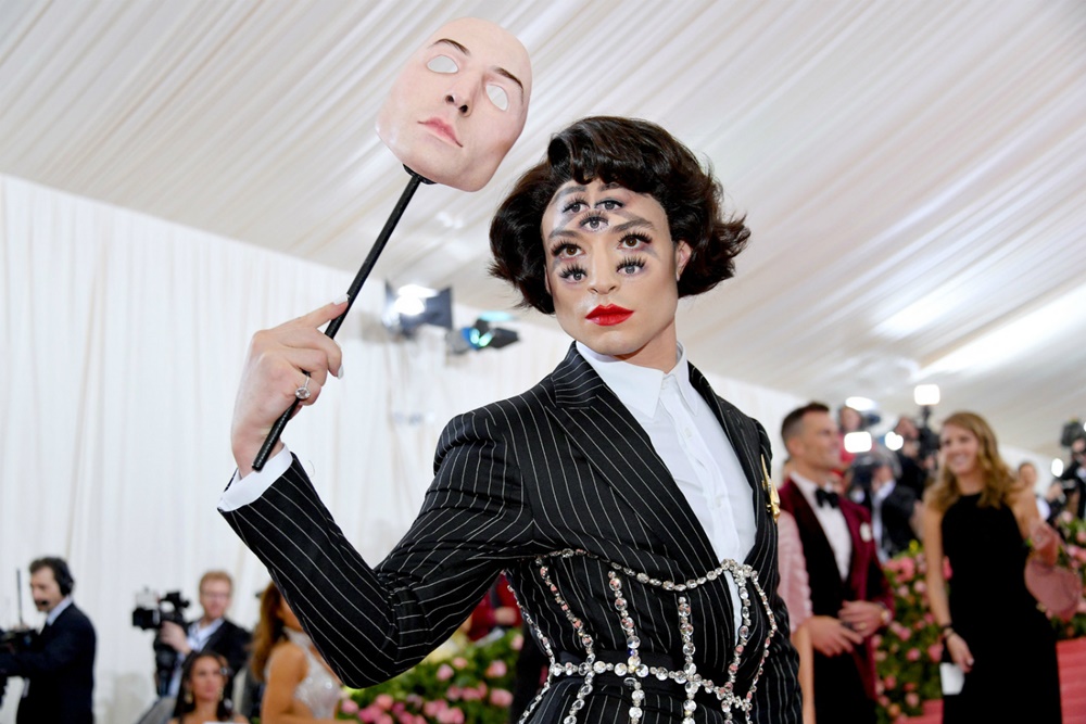 캐나다 출신의 아티스트이자 현재는 세계 최고 부자 중 한 명인 일론 머스크의 여자친구로도 유명한 그라임스도 멧 갈라에 참석했습니다. 그라임스는 평소에도 독특한 스타일링으로 대중적인 것과는 거리가 먼 인물인데요. 이번 멧 갈라에서도 독특한 모습으로 등장해 많은 사람들의 시선을 사로잡았죠. 그라임스가 입은 의상은 아이리스 반 헤르펜이 디자인한 것인데요. 컬트 영화에서 나온 것 같은 디자인이 특징적입니다.
