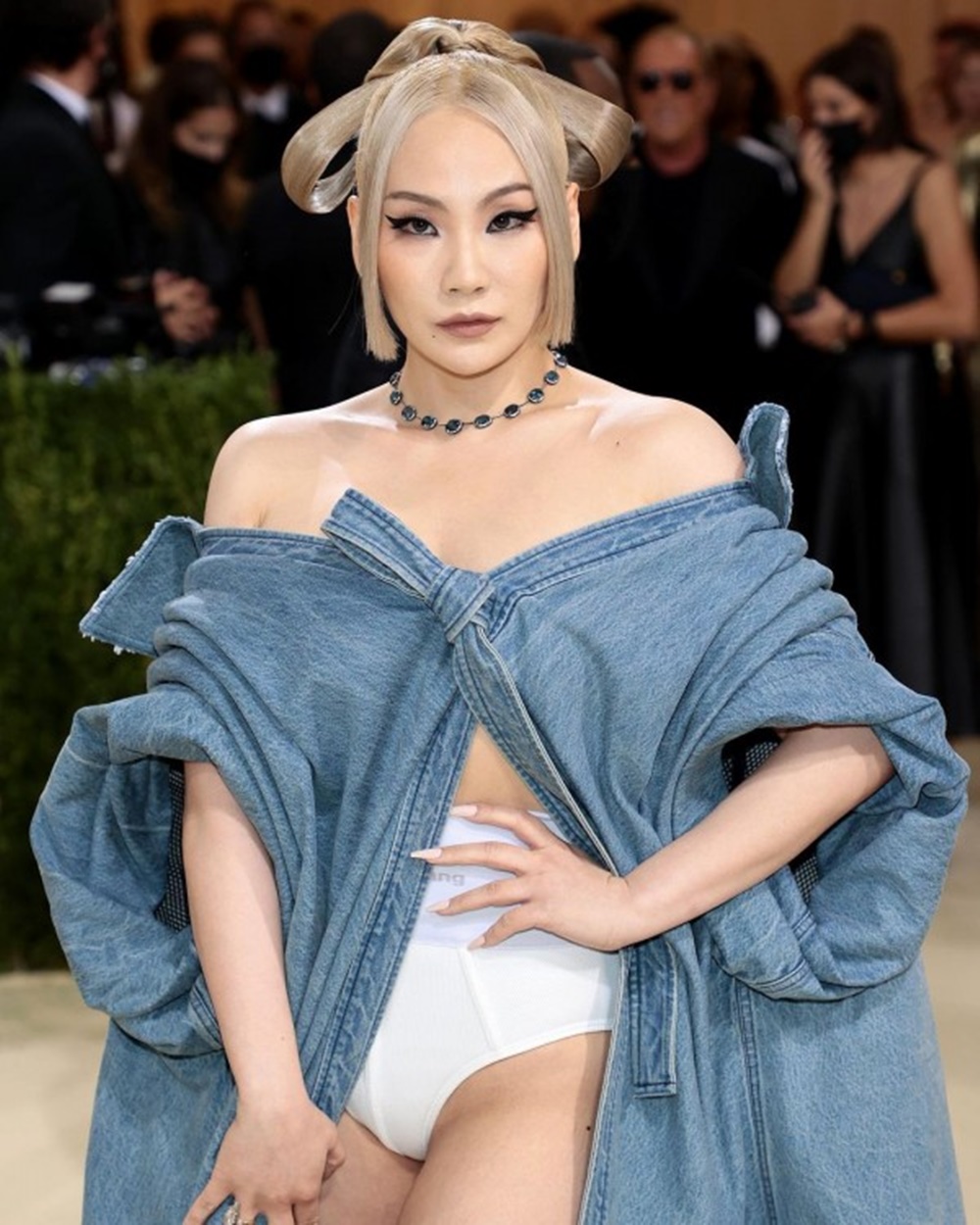 씨엘은 화이트 컬러의 밀착 핫팬츠에 데님 소재 원피스를 매치한 후 초커를 더해 스타일링을 완성했습니다. 씨엘의 의상은 이번 테마와도 잘 어우러지는데요. 미국의 상징인 데님 소재를 한복의 형식으로 재해석 한 옷이기 때문입니다. 물론 노출 콘셉트가 과하다는 평가도 있지만 멧 갈라에서 이 정도의 파격은 애교 수준이 아닐까요?