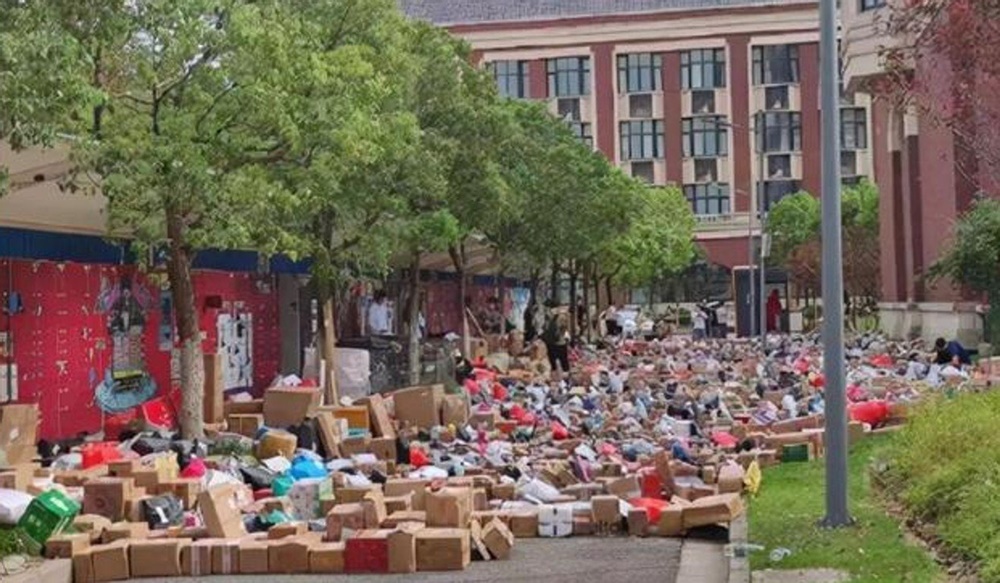 해당 사진이 촬영된 곳은 상하이에 위치한 지안차오 대학교입니다. 지안차오 대학교에는 현재 통행이 불가능할 정도로 택배가 많이 와 있는 상황입니다. 학생들은 자신의 택배를 찾는 것도 힘들 정도이죠. 이 택배 사태가 벌어진 것은 바로 코로나19로 인한 학교의 방침 때문이었습니다.