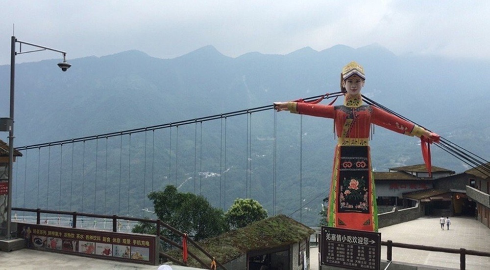 쓰촨성 몐양에 위치하고 있는 주황산에는 두 산을 연결하는 유리 다리가 있습니다. 이 다리의 양쪽 끝에는 중국의 민족의상을 입고 있는 사람을 형상화 한 거대한 조각상 두 개가 있죠. 많은 사람들은 이 조각상이 다소 무섭다는 반응인데요. 마치 '지옥으로 온 것을 환영한다'라고 말하는 것 같다고 하네요.