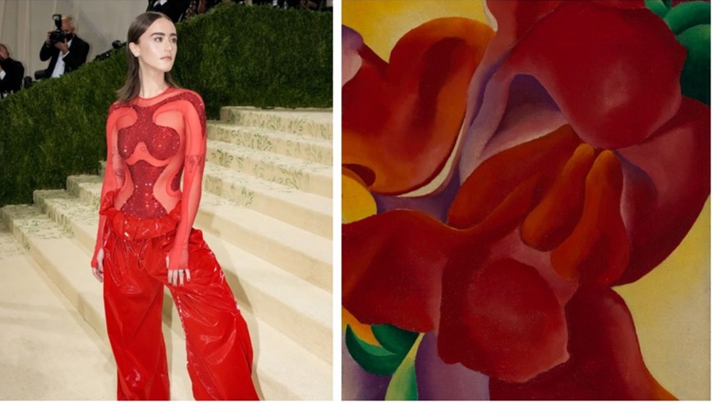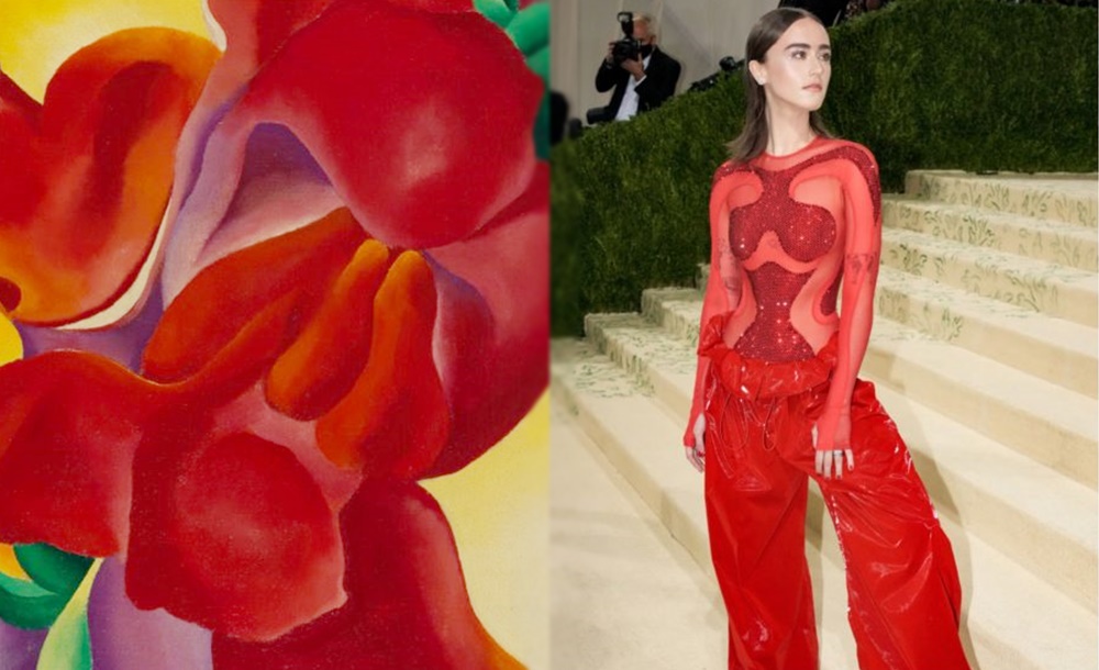 지난 1월 미국 대통령 조 바이든의 취임식에서 스포트라이트를 받은 인물. 바로 부통령 카말라 해리스의 의붓딸 엘라 엠호프입니다. 엘라 엠호프는 디자이너이자 모델, 그리고 아티스트로 활동하고 있는데요. 올해 멧 갈라에서는 스텔라 맥카트니의 의상을 입고 등장했습니다. 이 의상의 탑과 흐느적거리는 하의는 조지아 오키프의 1923년작 <레드 칸나>를 떠올리게 하네요.