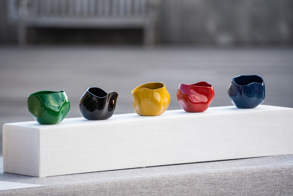 이들이 메트로폴리탄 측에 선물한 작품은 바로 정해조 작가의 옻칠 공예품 '오색광율'이었습니다. 오색광율은 오방색을 대표하는 다섯 개의 그릇 세트인데요. 이는 삼베를 천연 옻칠로 겹겹이 이어 붙인 공예품으로 한국의 전통색인 황, 청, 백, 적, 흑 등 오방색을 활용한 것입니다.
