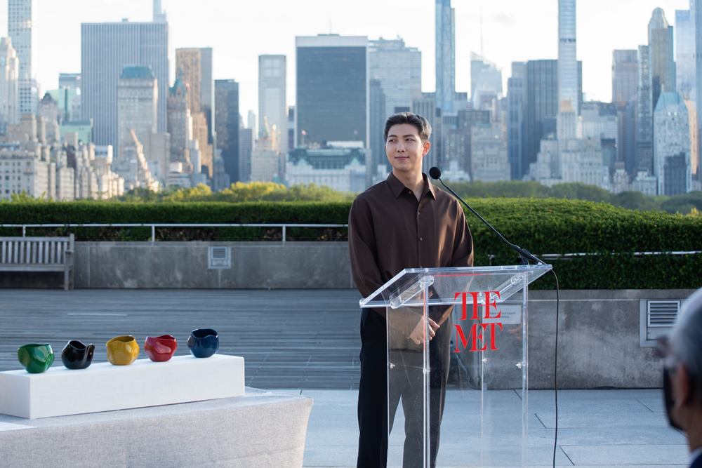 이곳에서 BTS의 리더 RM은 짧은 연설을 하기도 했습니다. 이 연설은 메트로폴리탄 미술관의 루프탑에서 열린 리셉션에서 한 것이었는데요. 그는 '세계의 시선이 한국 드라마, 한국 영화, 한국 음악 등 한국 문화에 쏠려있지만 아직 잘 알려지지 않은 많은 위대한 한국 예술가들이 있다'면서 '한국을 대표하는 미래 문화 특사로 한국 문화의 위대함을 더 확산하도록 사명감을 가지고 일하겠다'라고 밝히기도 했습니다.